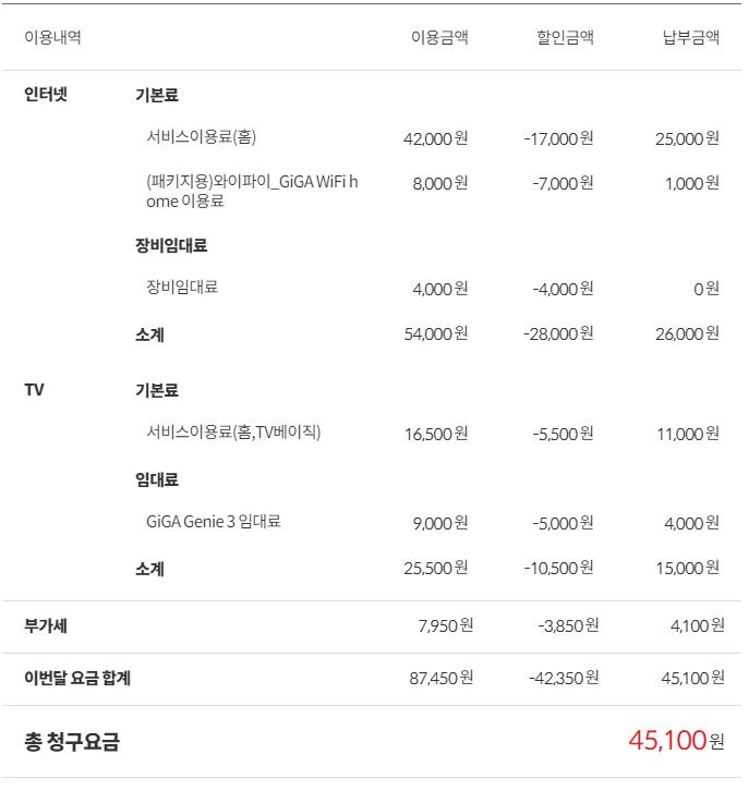 - 현재 SK는 46,200원, KT는 45,100원씩 납부되고 있습니다.