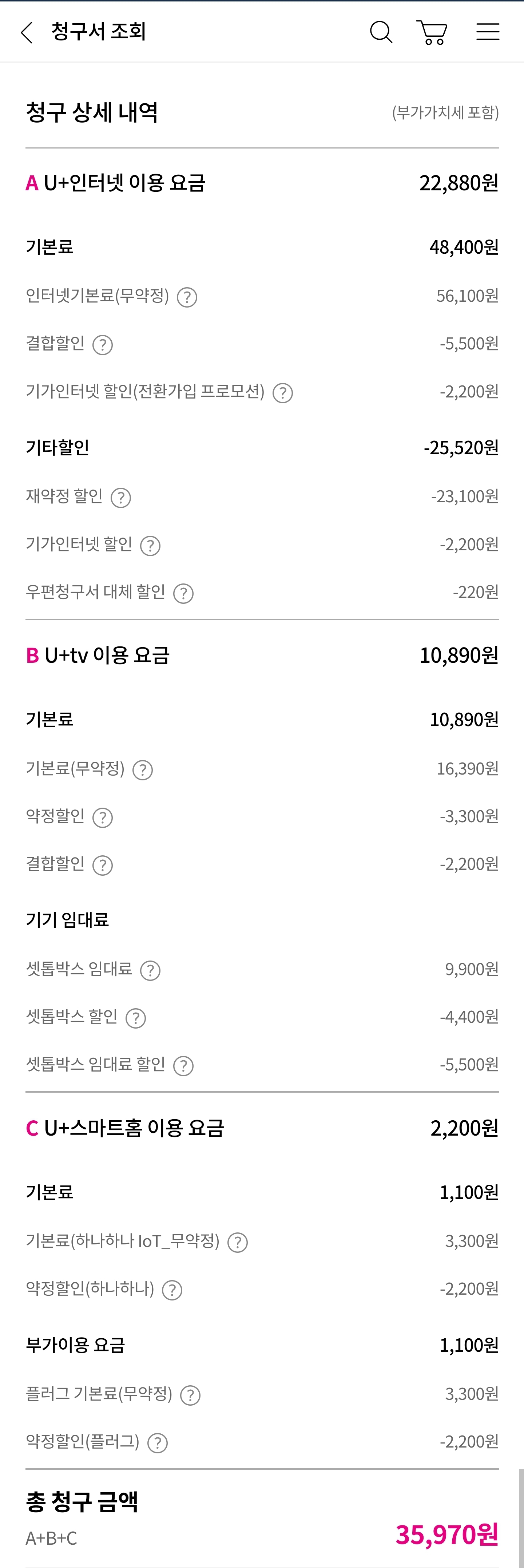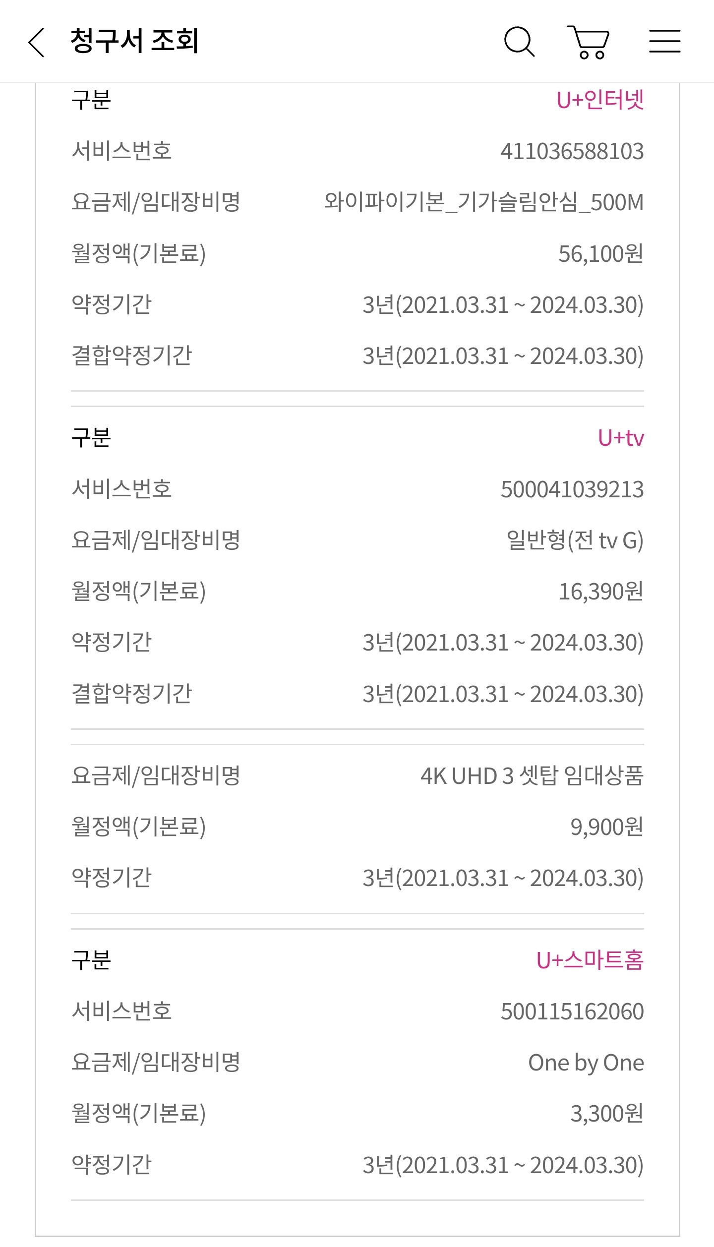 참고로 U+스마트홈은 재계약을 해더라도 해지할 예정입니다. 요금에 차이는 없다고했습니다.
