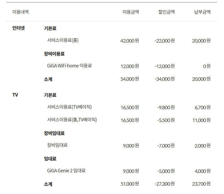 현재 KT 구결합 이용중이고 TV 결합이 최근에 종료되어 재약정을 진행해야 하는 상황이 되었습니다...! (지난 TV 신규 가입은 백메가에서 진행하였습니다 벌써 3년이 흘렀네요 ㅎㅎ) 기존 할인금액과 실 납부 금액은 이렇게 되구요! (최근에 일반전화는 해지하여 다음달부터 제외될 예정입니다)