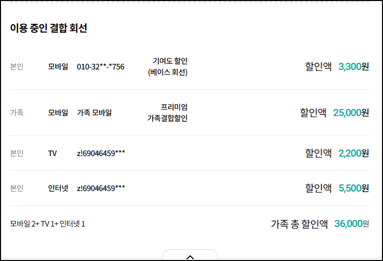 현재 가족분들의 통신 상품 상황은 아래와 같겠지요?