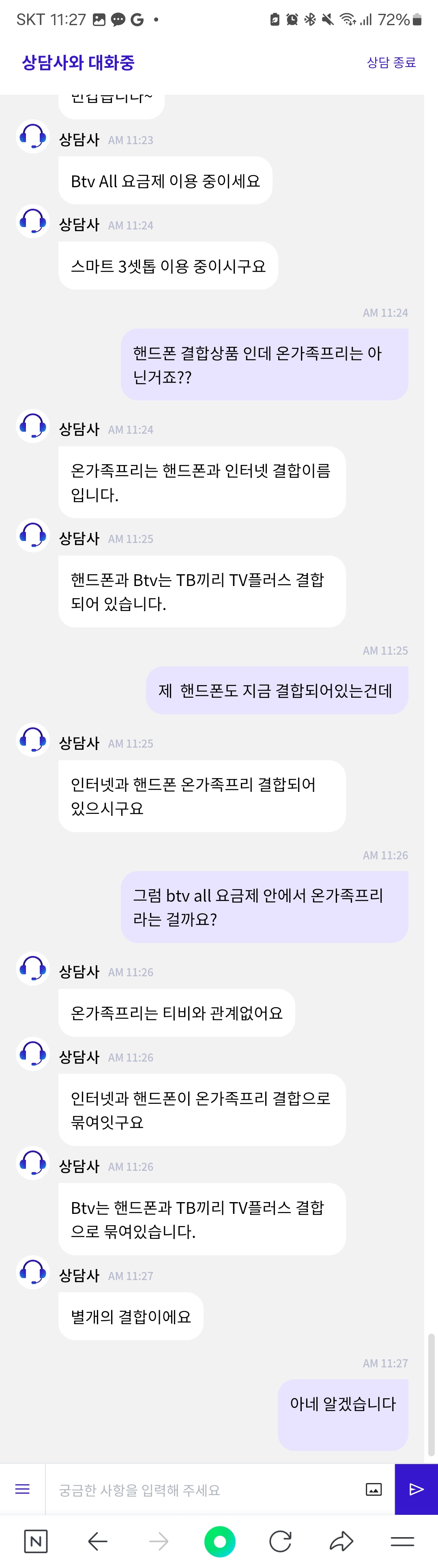 "온가족프리"는 먼 옛날 옛적에 사라진 결합상품으로