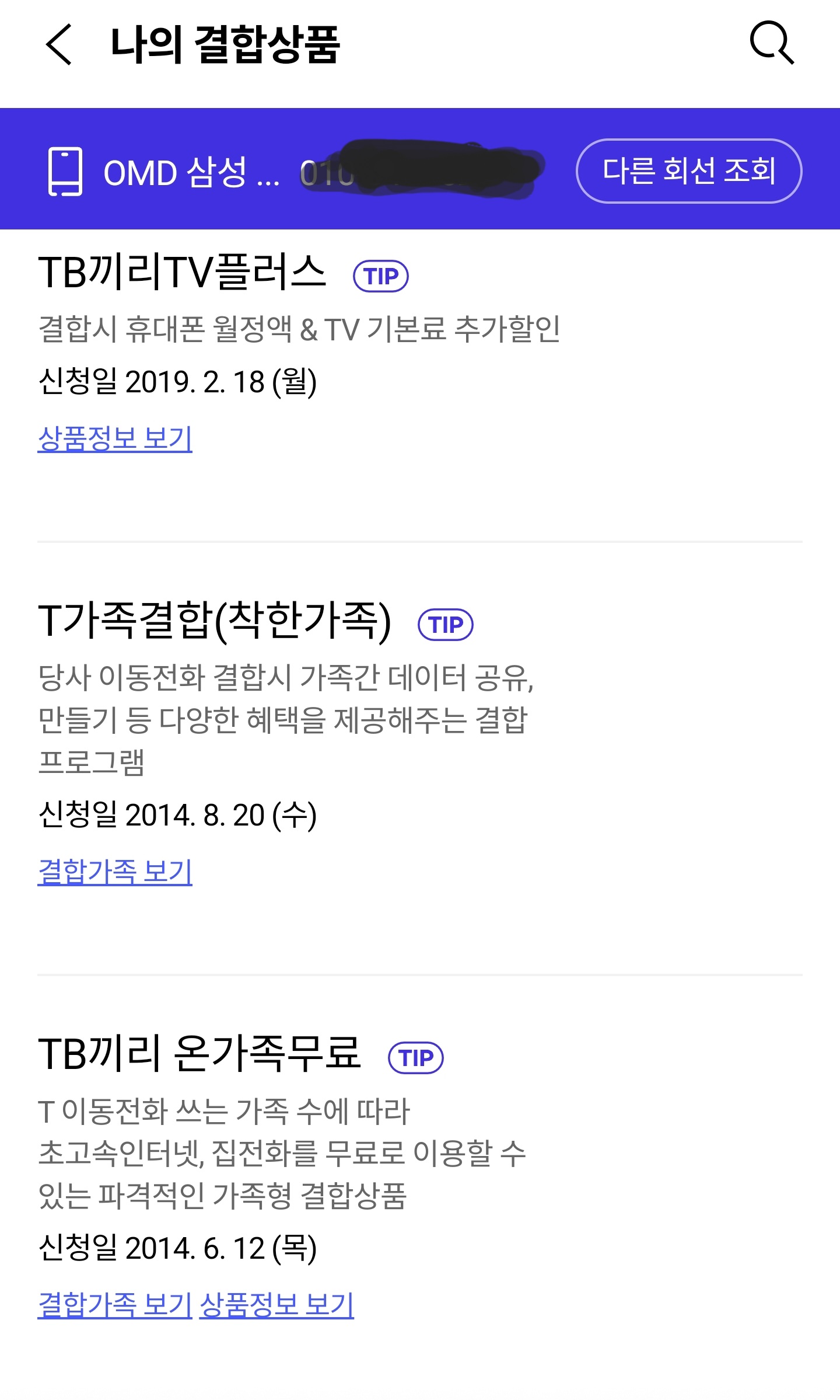 SK인터넷에 휴대폰이 4회선 결합되어 있어