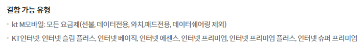 KT도 LG와 동일하게 결합 가능 사업자/요금제를 써야 하고요~