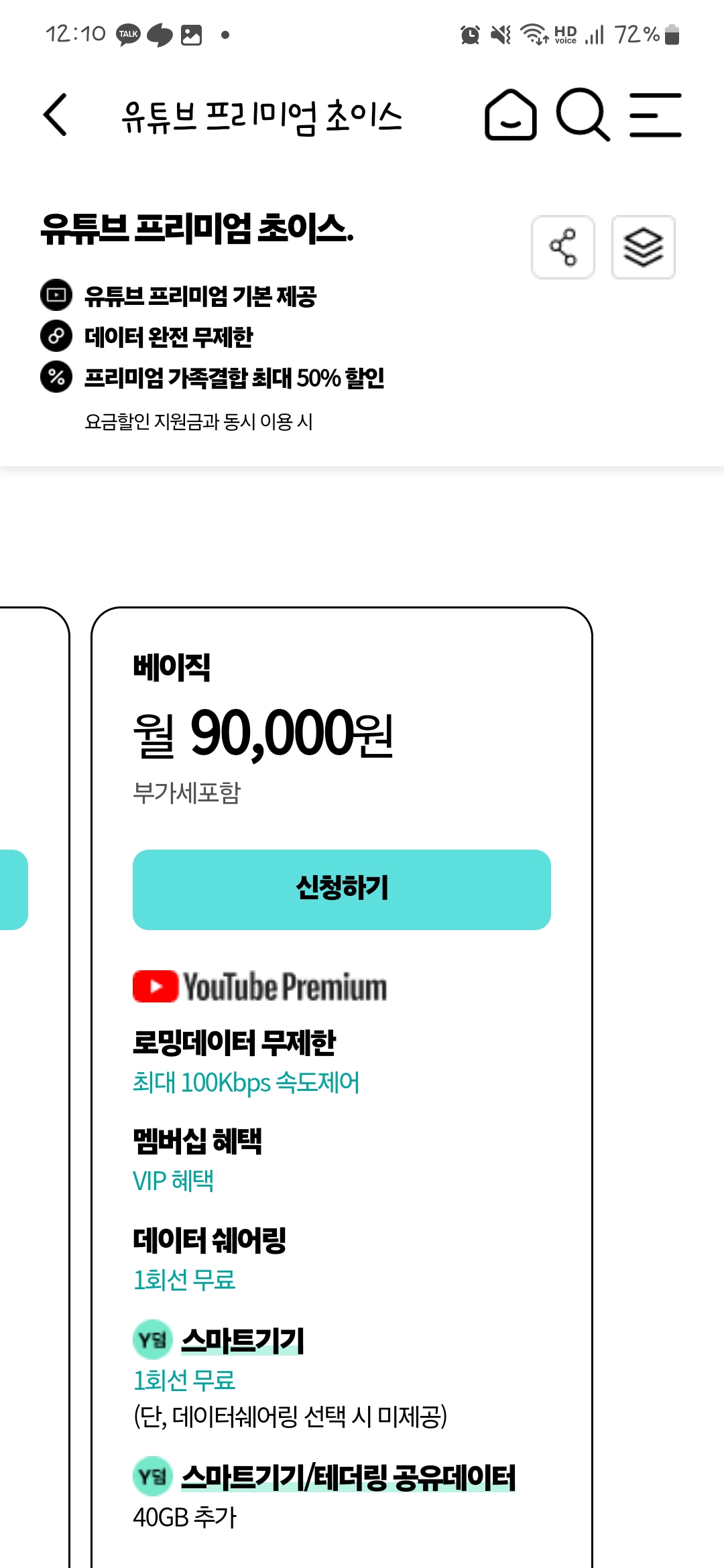 남편은 현재 kt유투브프리미엄초이스베이직을 사용하고 있습니다.