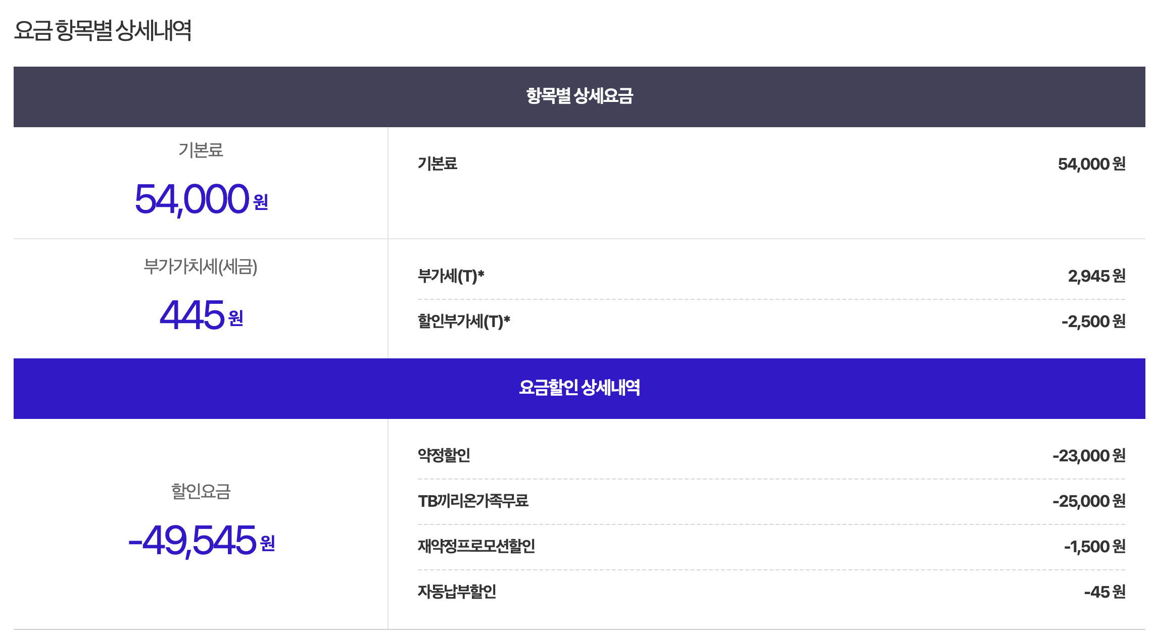 *가입년수 30년 이상 : 인터넷 50% 할인 / 휴대폰 요금제 할인 30%