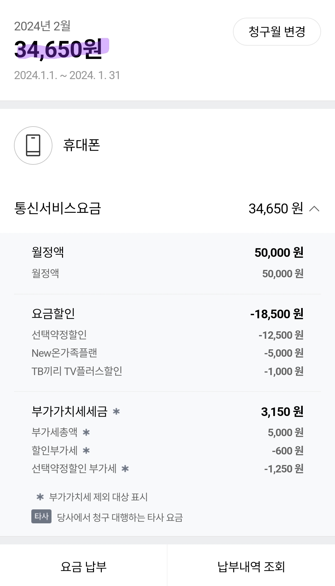 폰요금은 3만5천원 정도입니다