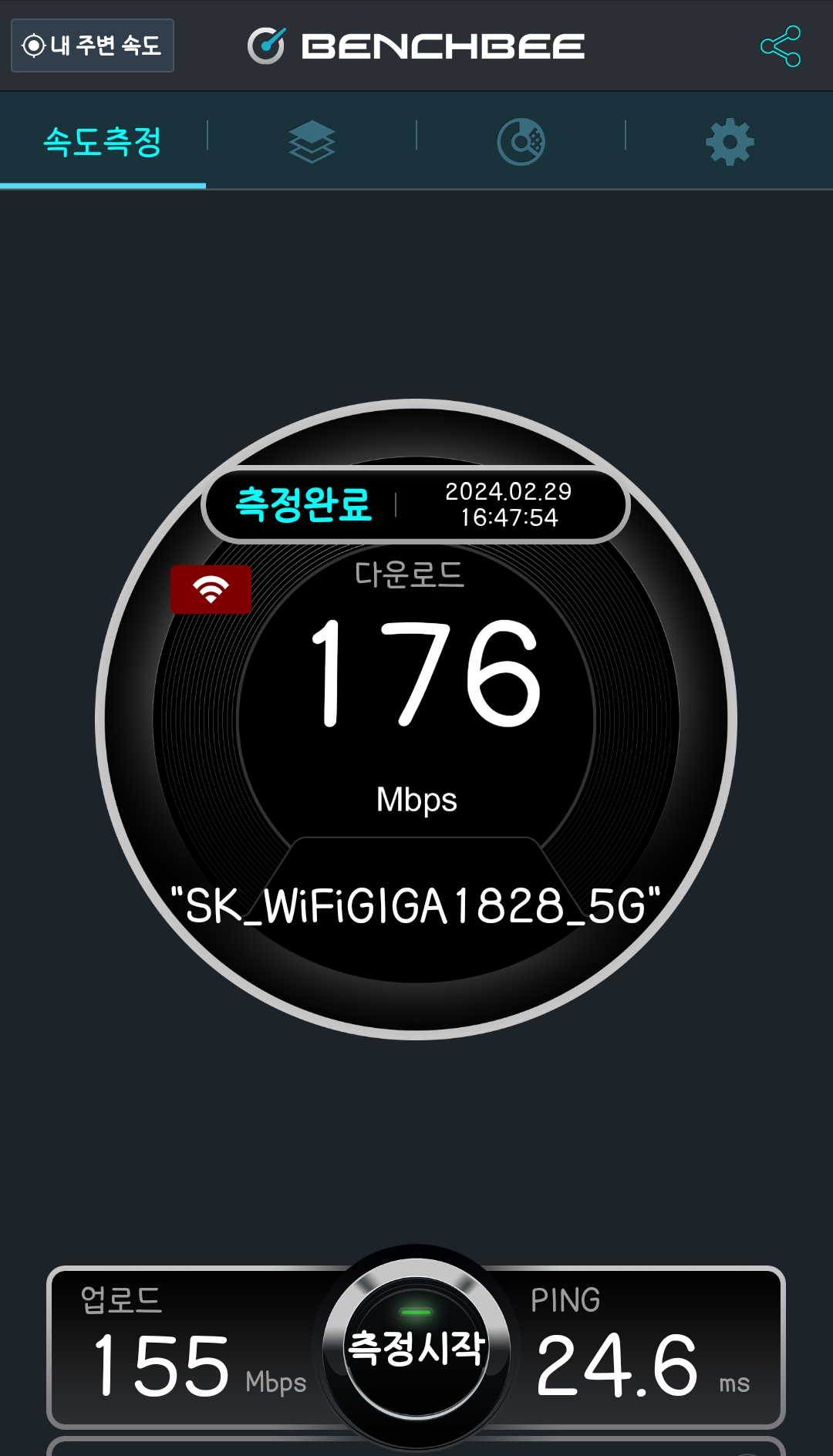 휴대폰에서도 와이파이를 잡을 때 속도 품질에 문제가 없으니