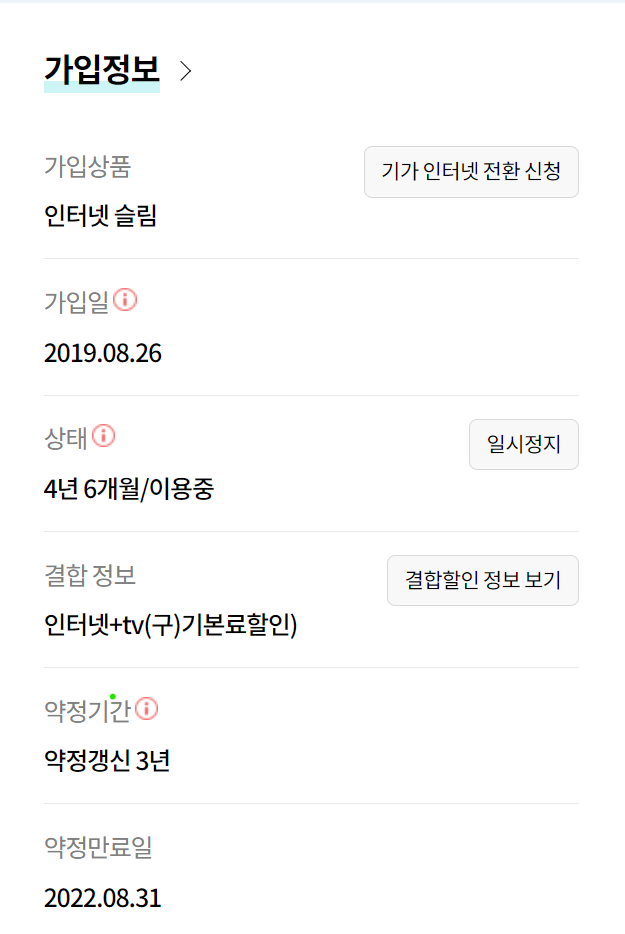 제가 쓰는 인터넷 1회선 -> 재약정