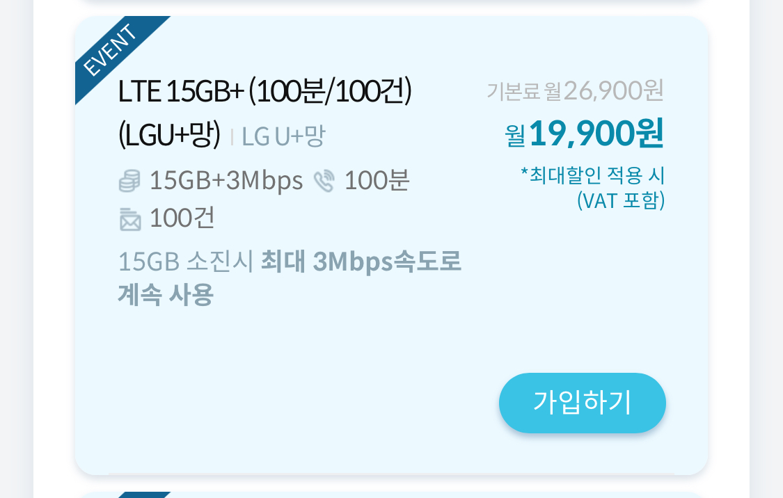 LTE 15GB+ (100분/100건)(LGU+망)