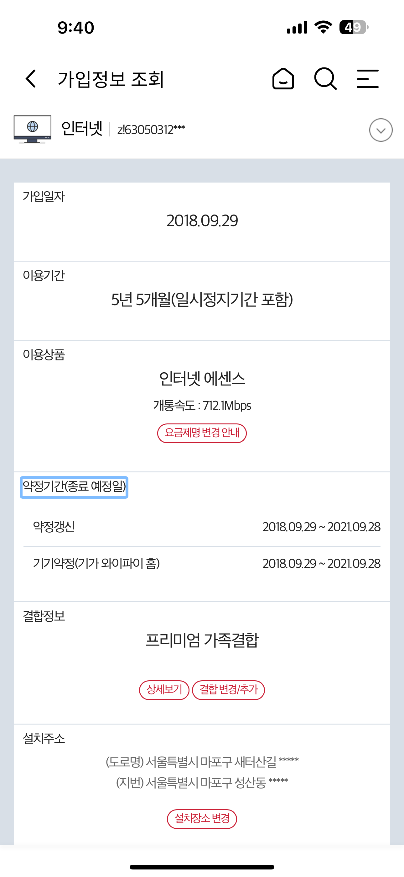 현재 KT인터넷에 "프리미엄 가족결합"을 적용해 요금 할인을 받고 있는데요~