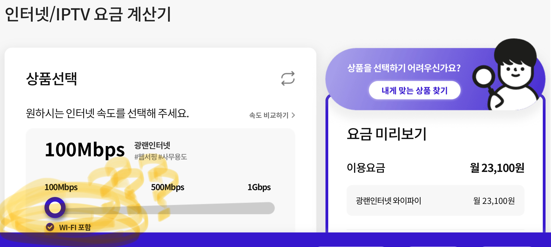 "인터넷이 와이파이를 지원했으면(공유기 본체X, 공유기는 이미 보유중) 좋겠습니다"라고 하셨는데요~