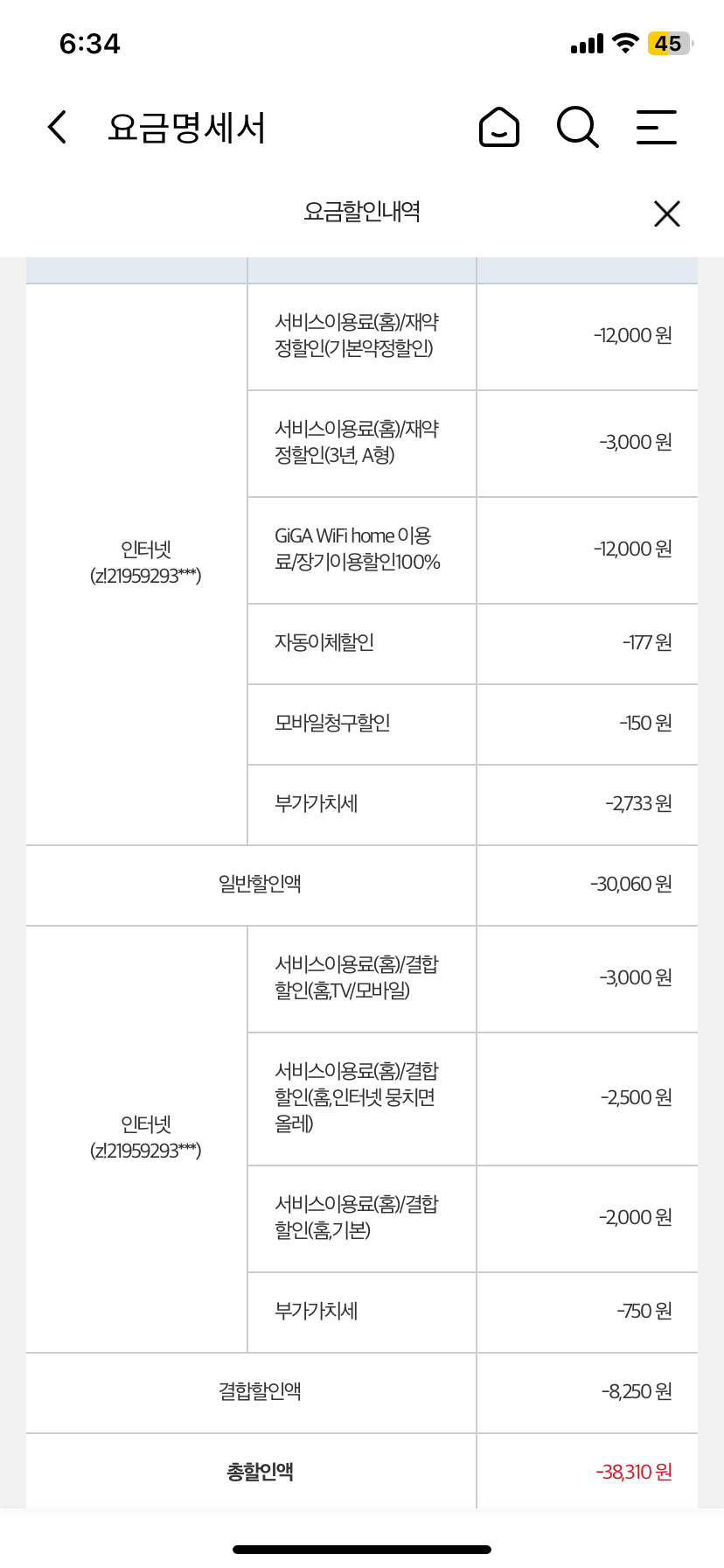 참고로, 아마도… KT폰 1회선과의 결합 할인이