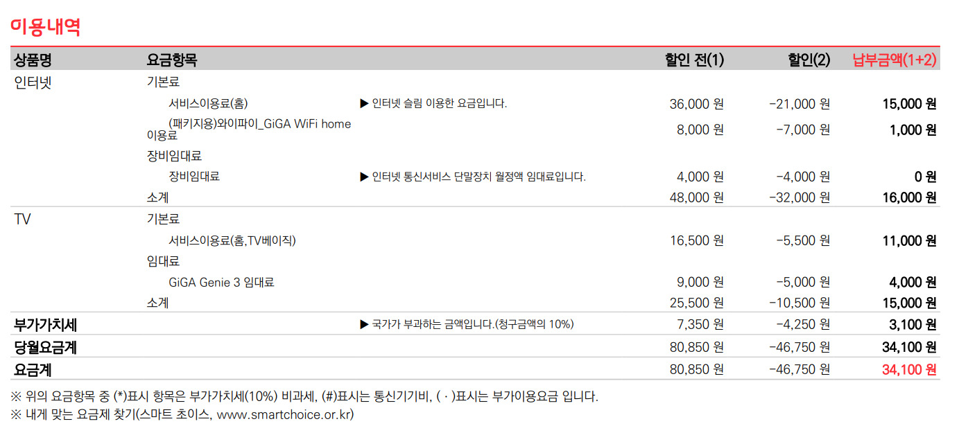 2번의 경우 청구서 내역으로는 따로 적용된 장기 이용 혜택이나 프로모션 할인이 없습니다만..!