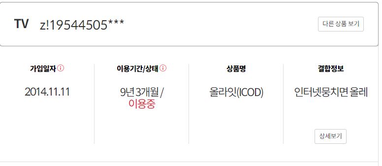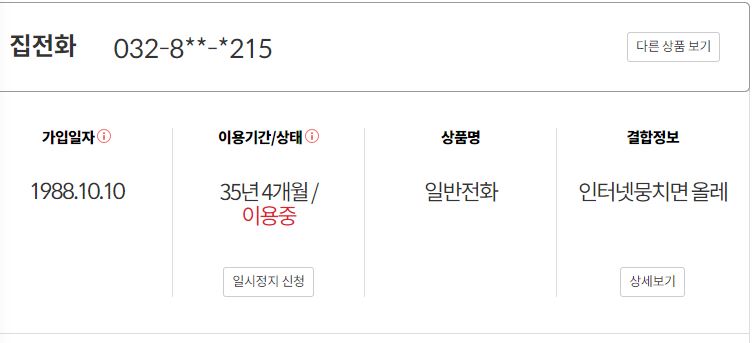 현재 KT로 본가 아파트 단지내에서 기존 상품을 결합하여 사용중이며, 상세 내용은 아래와같습니다.