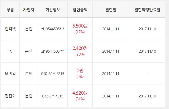다만 혹시라도 인터넷 요금에서 특별하게 적용받고 있는 할인 혜택이 있다면