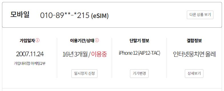 다만, 제가 기존 모바일 요금제(LTE 음성 12.1)에서 결합 등의 큰 이득이 없다면 타통신사(알뜰폰)로 이동을 고려중입니다.