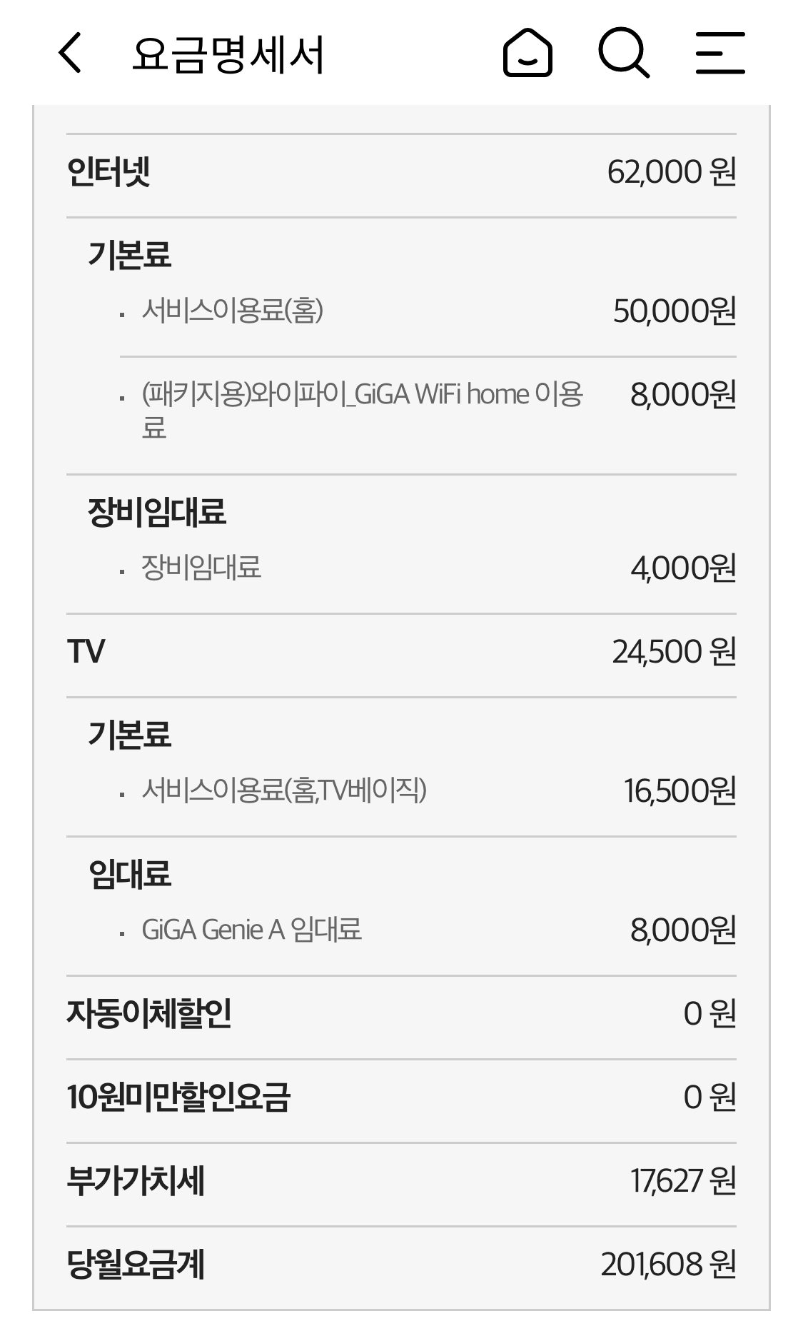 요금 명세서에 할인 요금과 실제로 청구되고 있는 월요금도 함께 확인될텐데