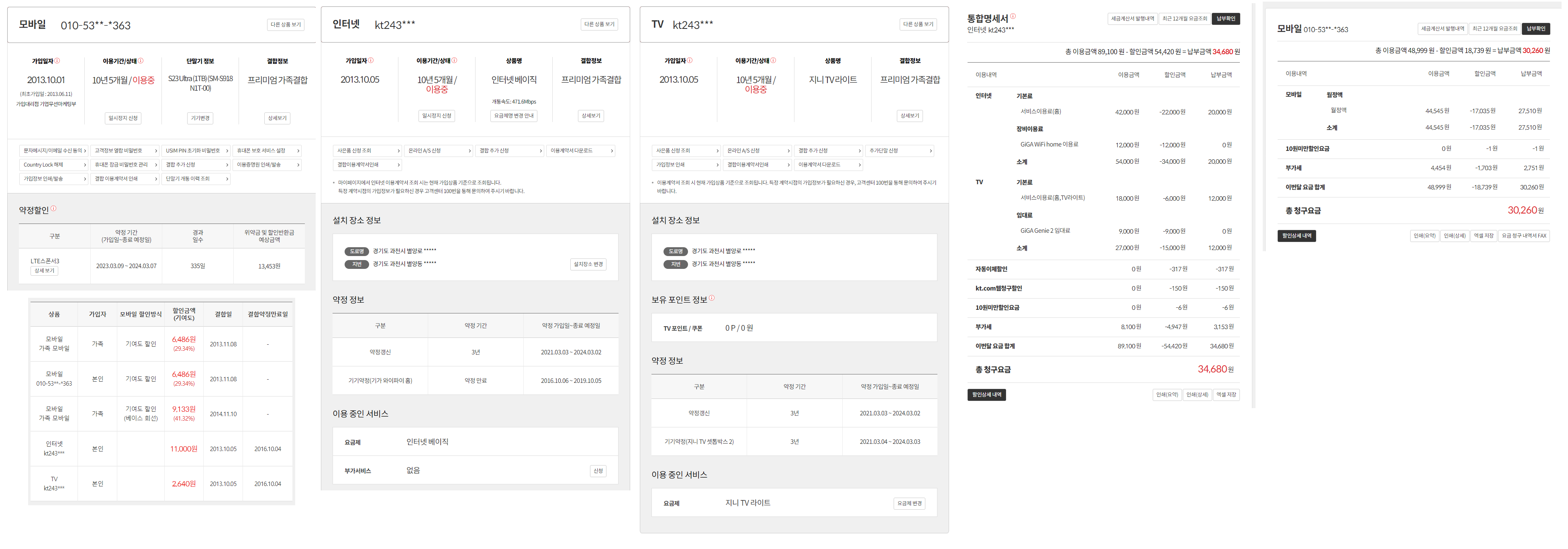 현재 가족 3명이 모두 KT인터넷/핸드폰을 사용하고 있습니다.