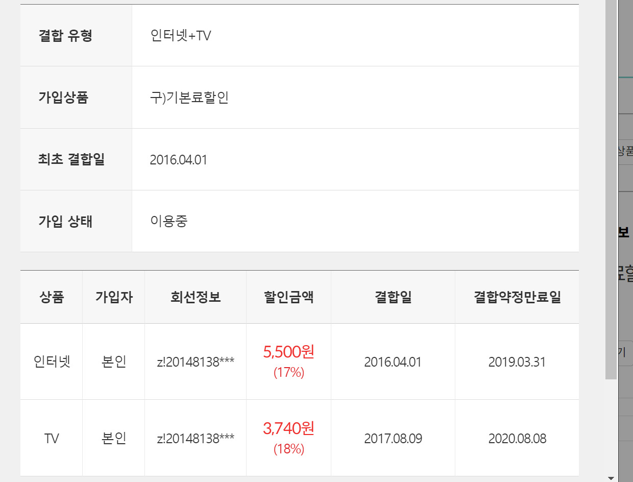 인터넷을 지금 본가에서 아버지명의로 KT 인터넷+tv 결합하시고있고(구,기본료할인 결합)
