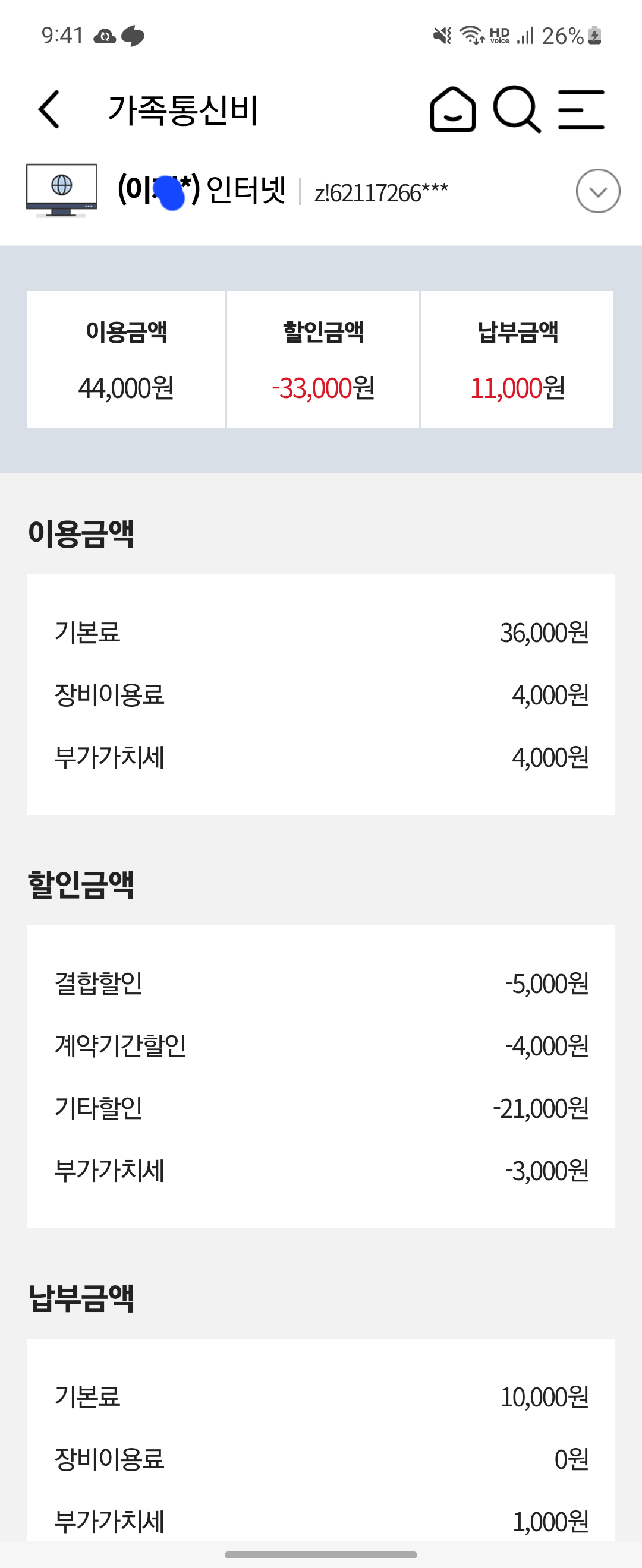 본인 혹은 직계가족 명의의 모(母)회선 인터넷이 있는 경우에