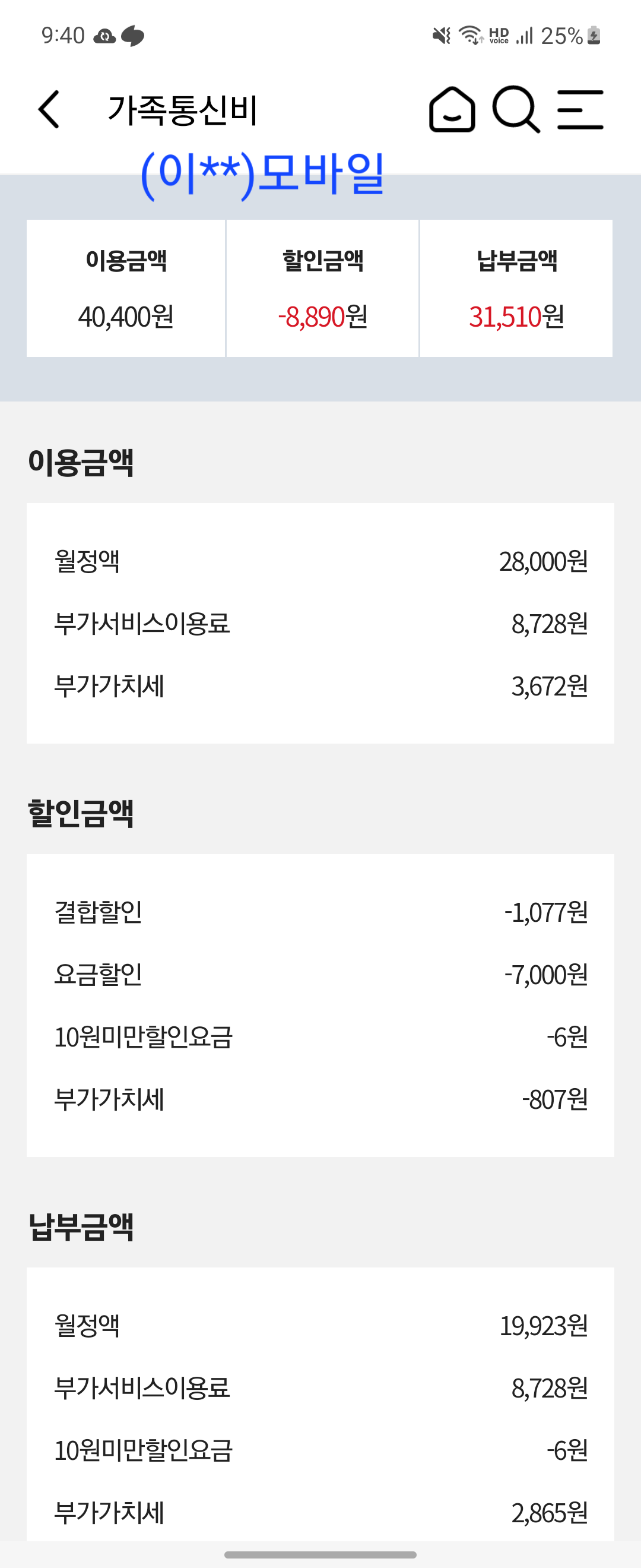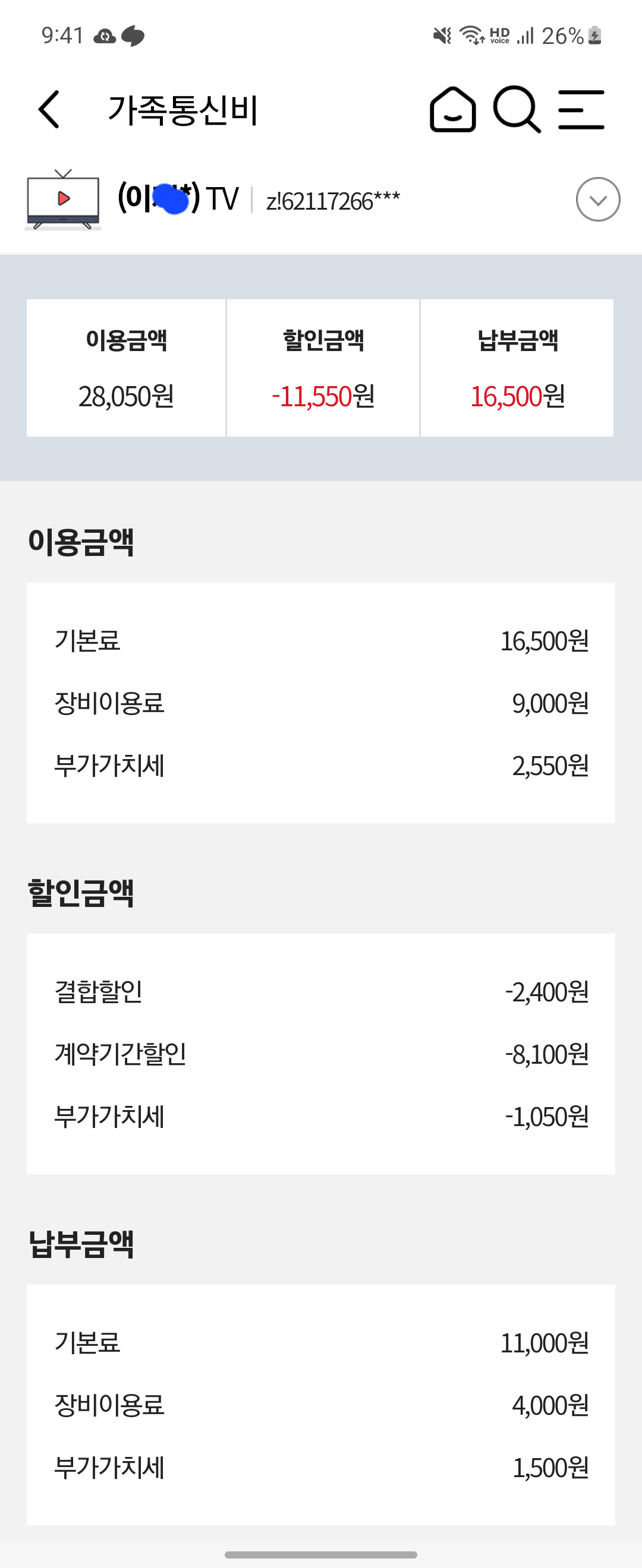 정확한 할인 요금 계산을 위해 사용하시는 휴대폰 요금제 명칭 확인이 필요합니다.