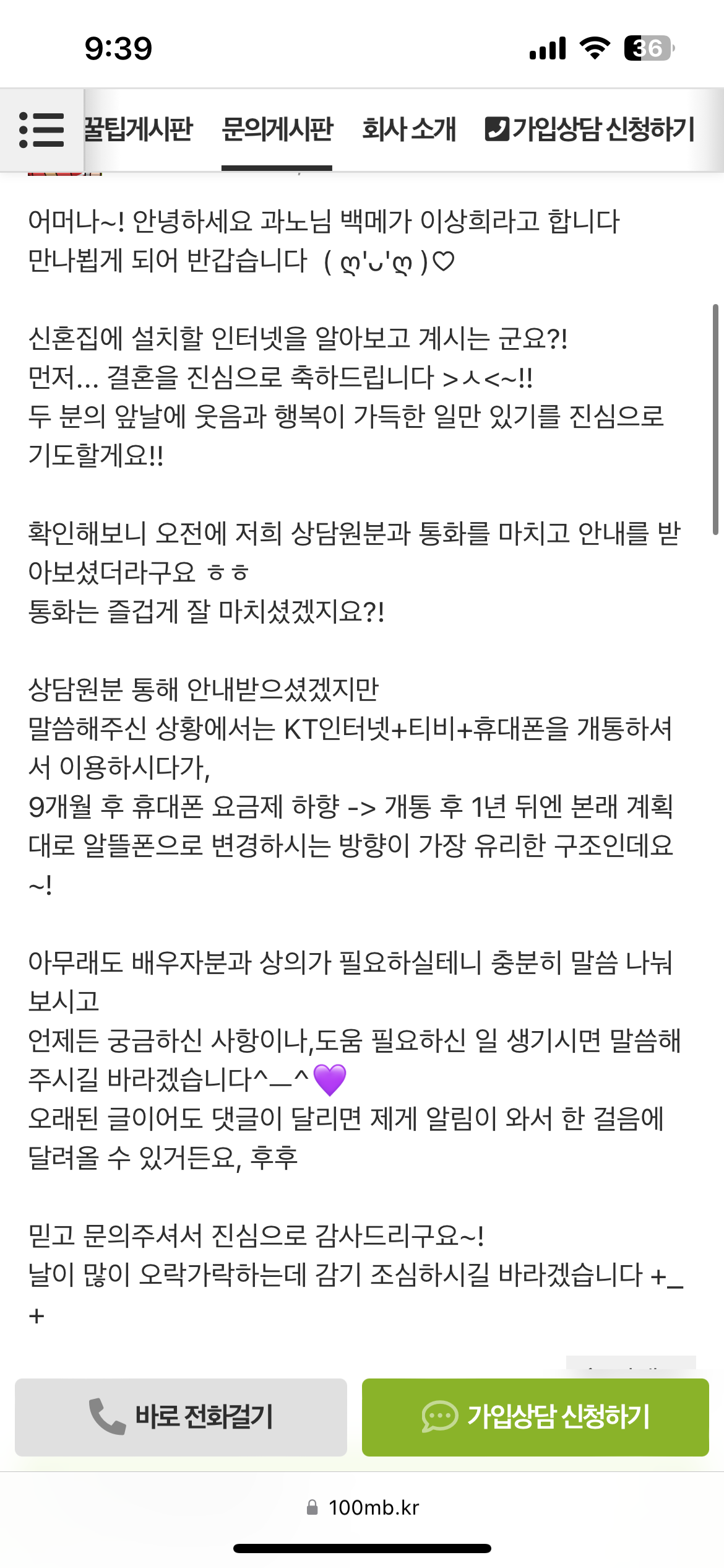 그럼 저희 상담원분이 이 글을 읽고 연락드려서 가입진행해주실 텐데
