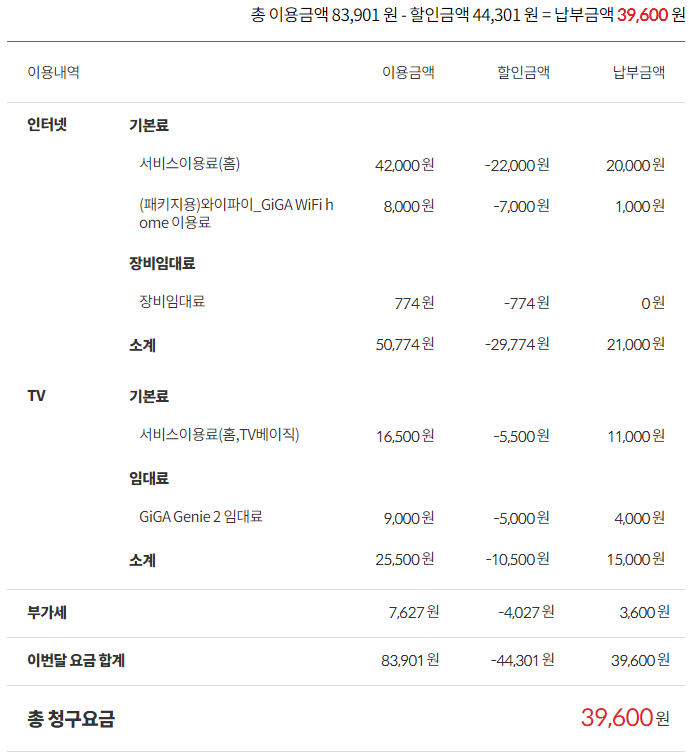 <인터넷 가족끼리모여 할인>이 적용되어,