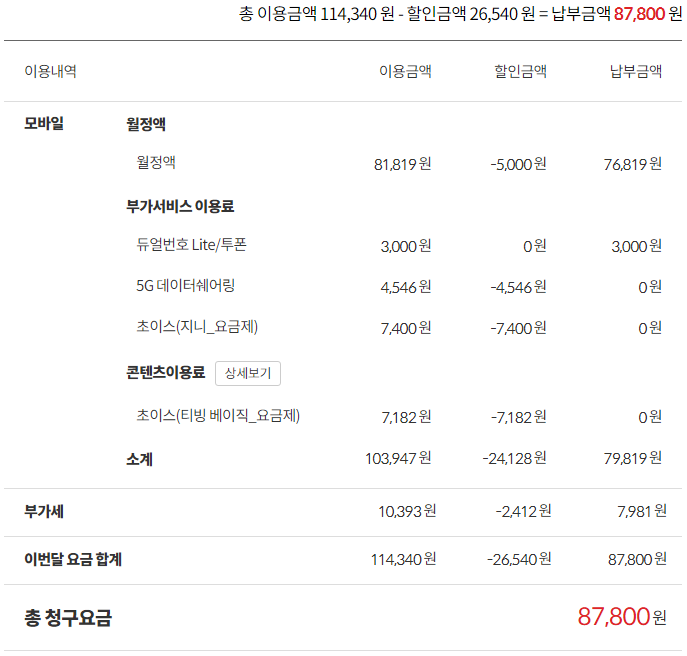 현재 휴대폰은 2대 모두 9만원짜리 요금제(슈퍼플랜 베이직 초이스) 사용중이고,