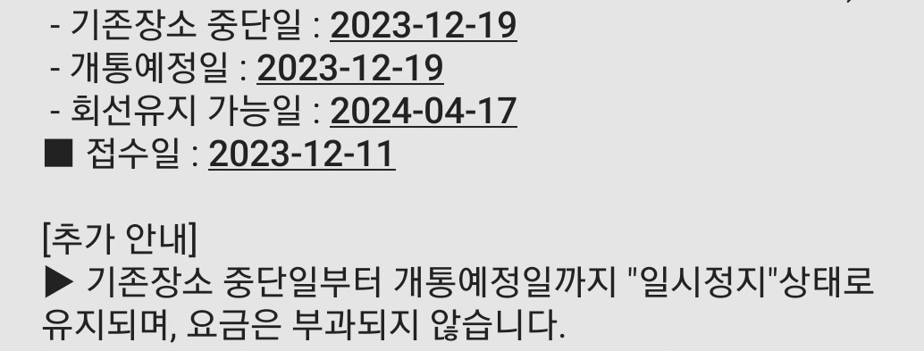 이미지처럼 개통예정일과 중단일이 동일한 날짜로 기재되거든요.