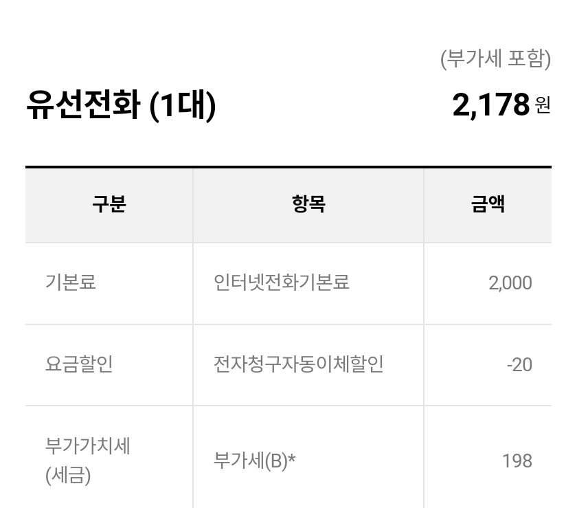 인터넷전화는 알아보니 사진처럼 유선전화 2천원 짜리로 결제되어 있는데 이게 할인되는 상품이 맞는지 궁금합니다