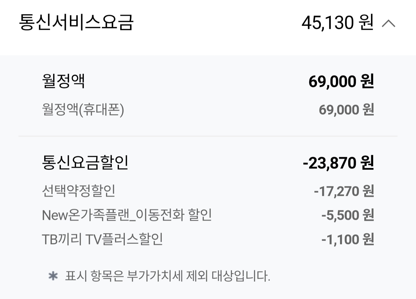 요금 할인액을 포함하면