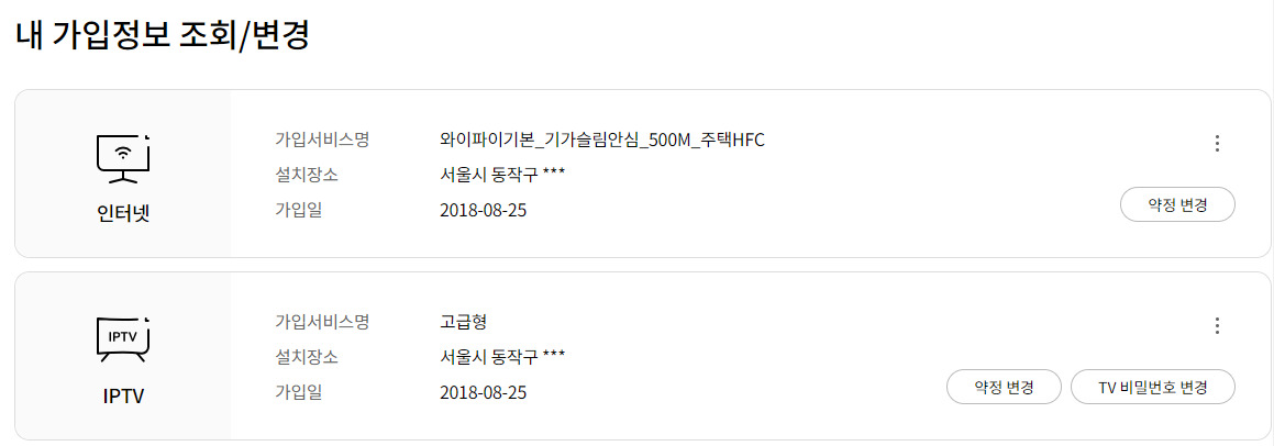 2018-08-25에 LG유플러스에서 인터넷/TV를 가입했습니다. (집에서 쓰는 용도)