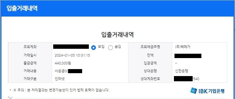 혹시 몰라 입금증까지 확인하여 첨부해드리니 확인해보시면 좋겠습니다 :)