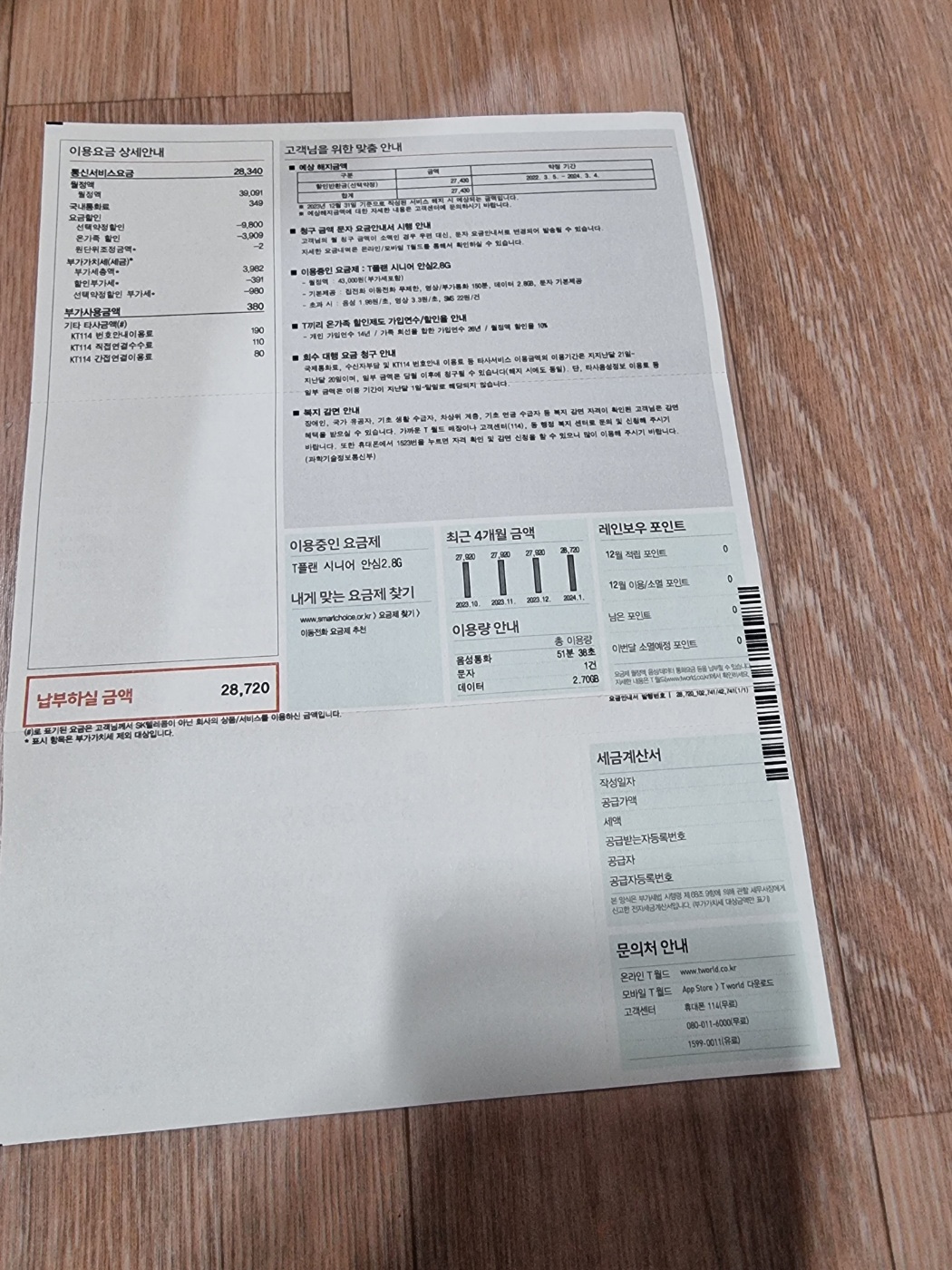 @이상희전달받은 명세서 올려드립니다. 휴대폰요금 10% 할인받고 계신 것 같습니다