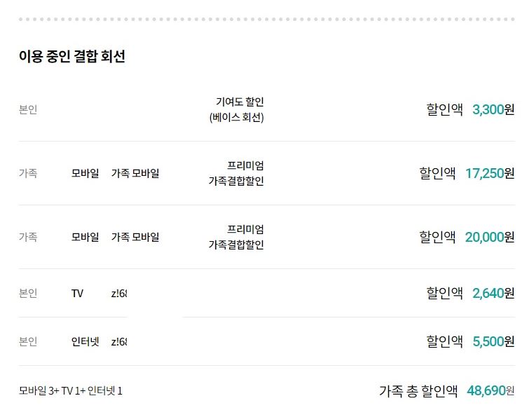 그리고 지금 쓰시는 인터넷에 KT휴대폰도 결합해 두셨기 때문에
