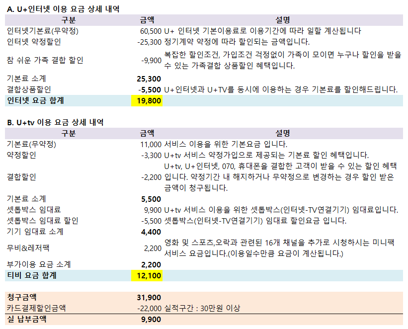 3. KT와의 요금 비교도 해보아야 결정할 수 있겠지요~!?