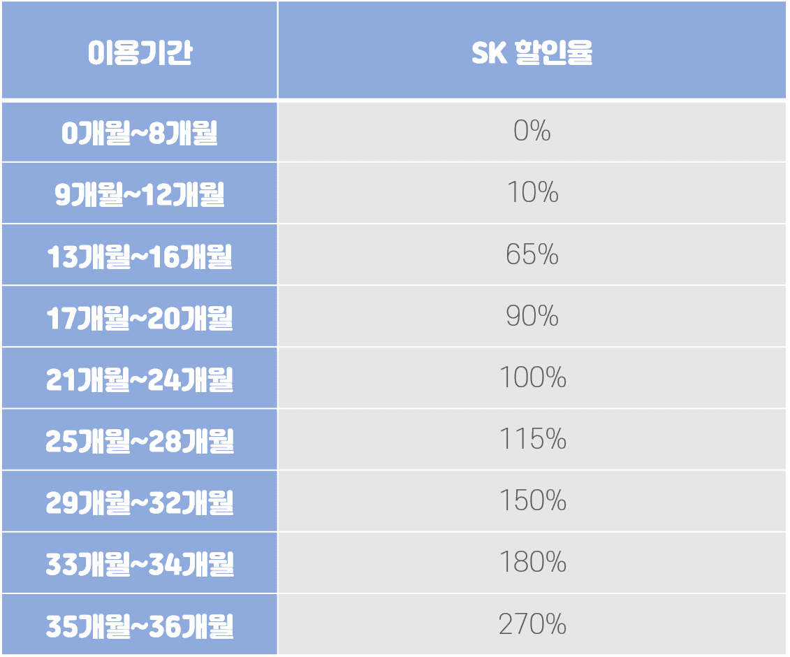 4. 개월수마다 할인율이 차이가 있는 건 자동으로 모든 가입자에게 적용됩니다.