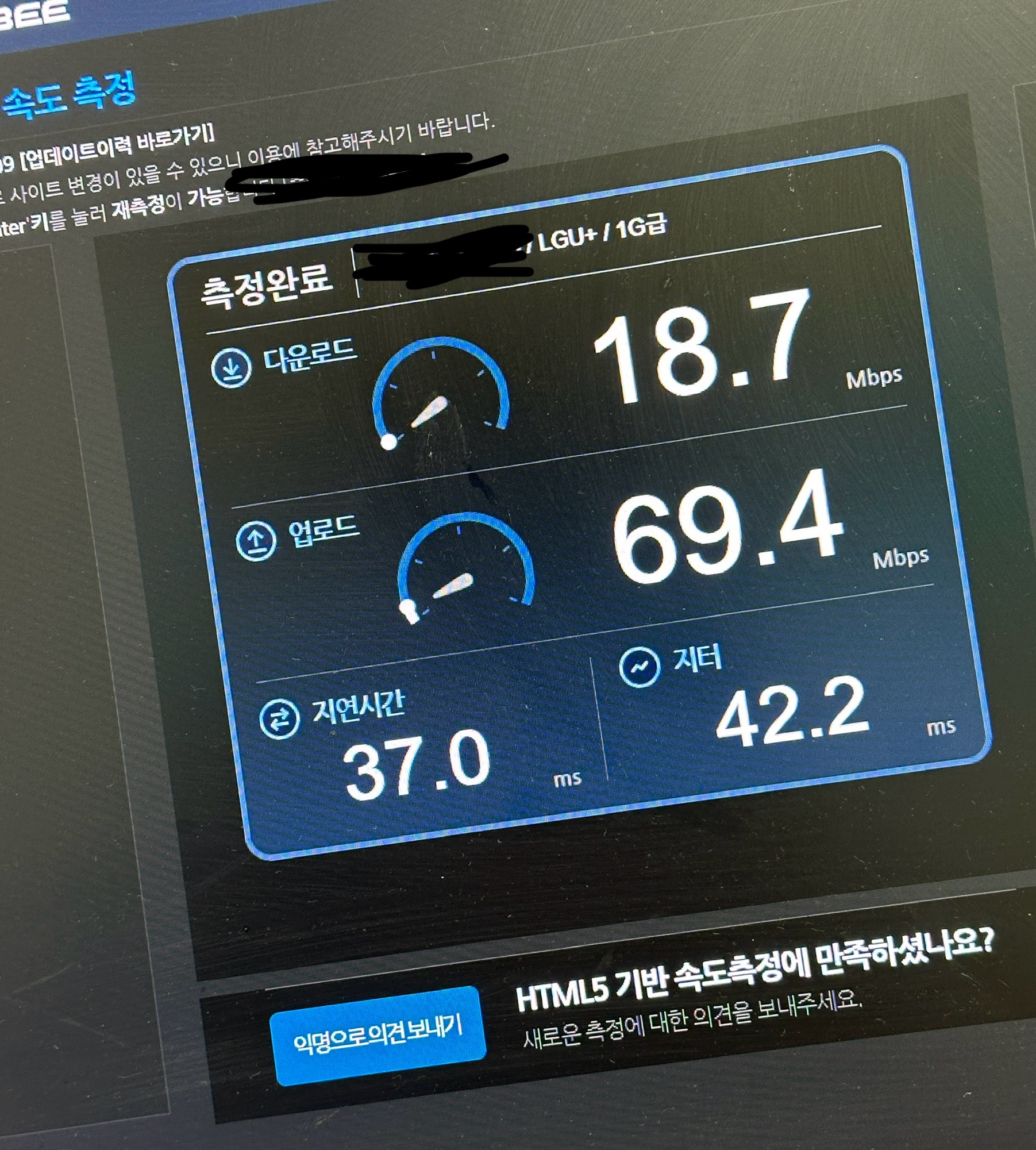 약 1년전부터 PC로 웹서핑중 속도가 현저히 저하된것을 느끼게 되어 유플러스측에 연락해 저희집 공유기를 모두 교체 받아보았습니다. (유플러스 공유기 두 개 설치하였음, 광랜사용)