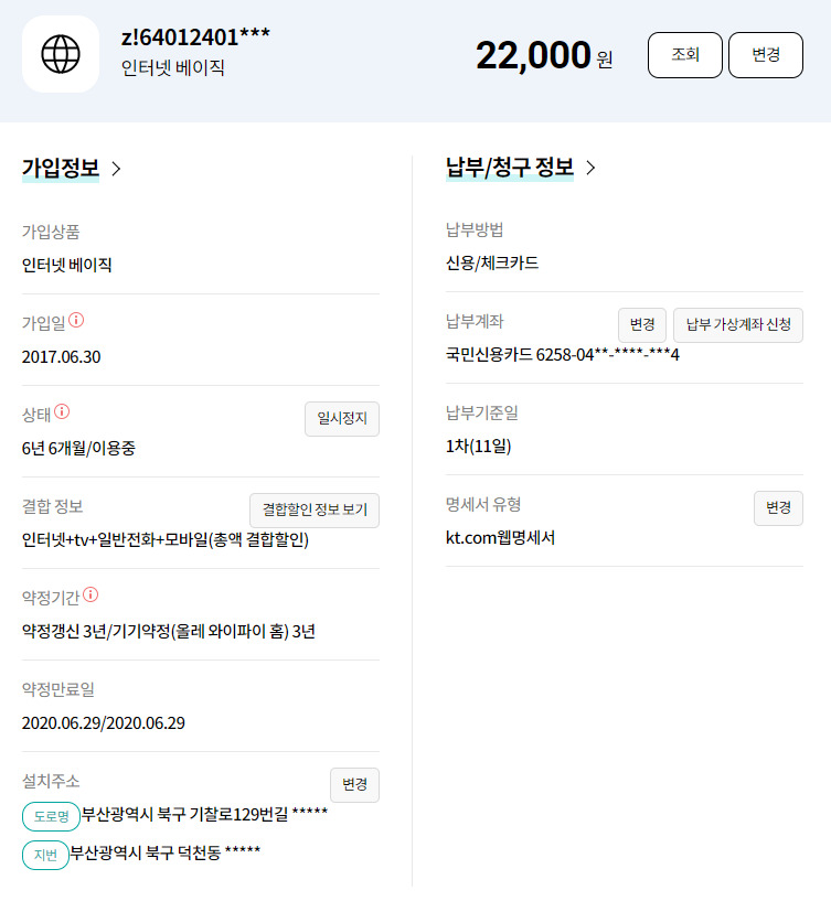 KT 약정 만료 상품 재가입 및 결합상품 문의