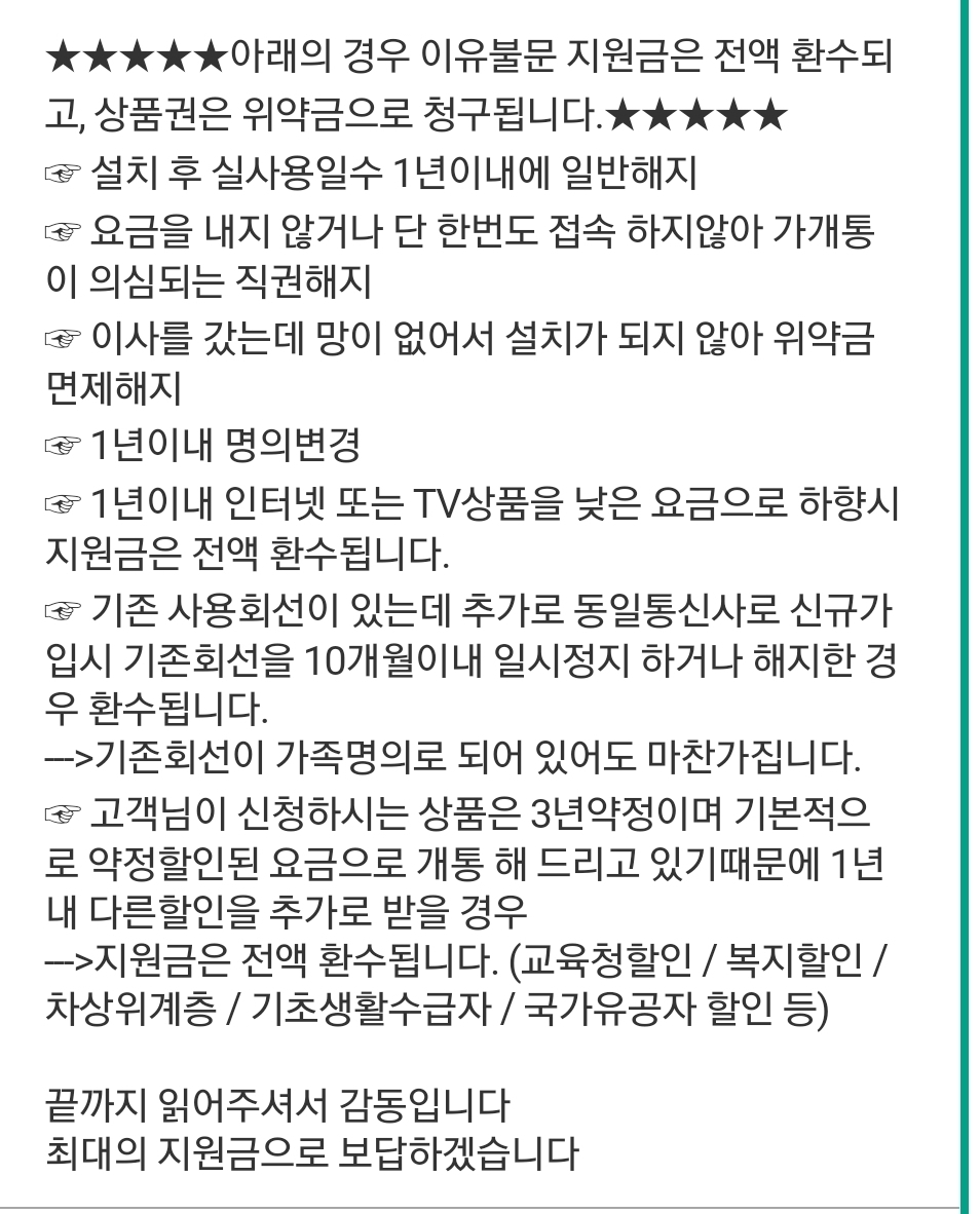 (동생분께 꼭 위약금 면제 해지 사유는 설치 불가 사유로 등록해 달라고 본사에 요청하라고 해주세요⭐)