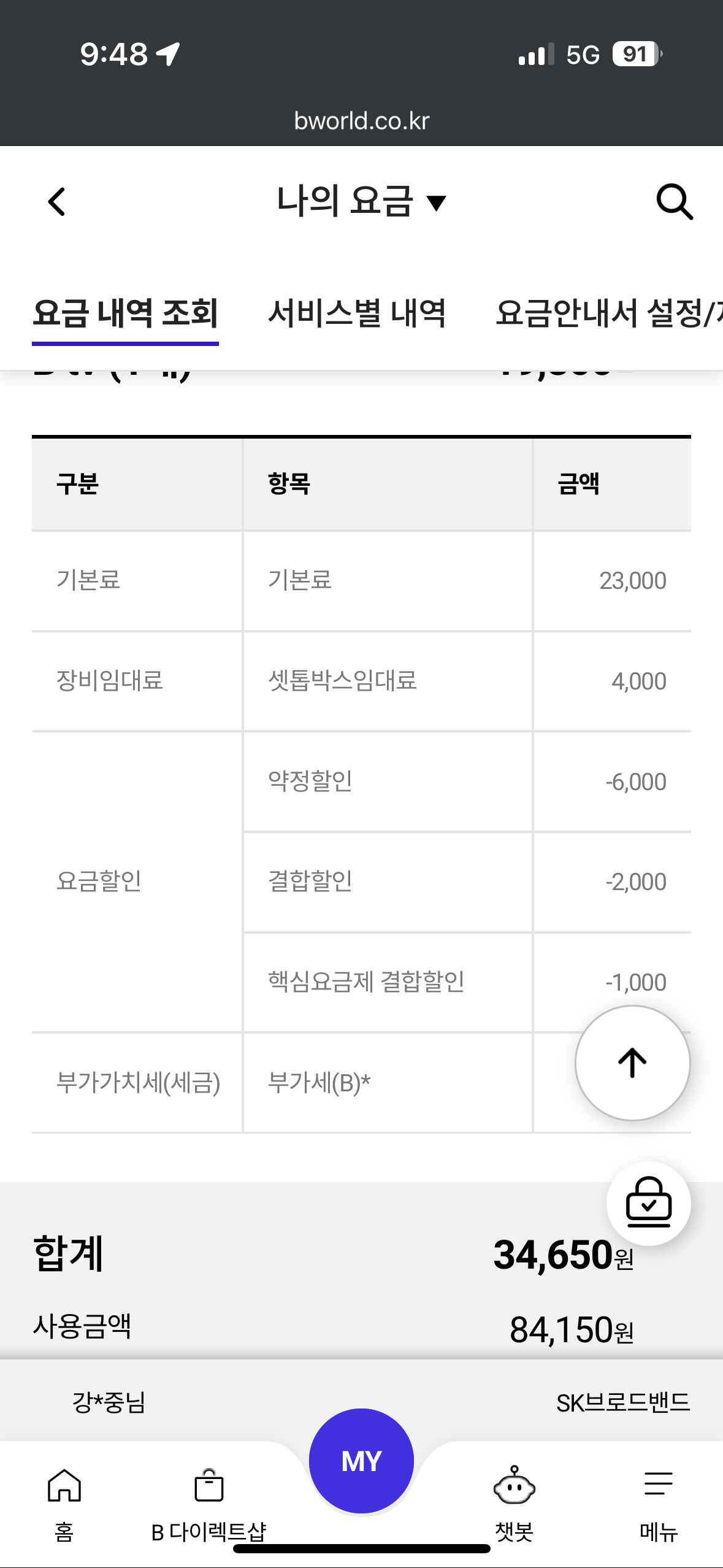 인터넷과 티비 요금이 34,650원이 되었쥬!!^ㅇ^bbb