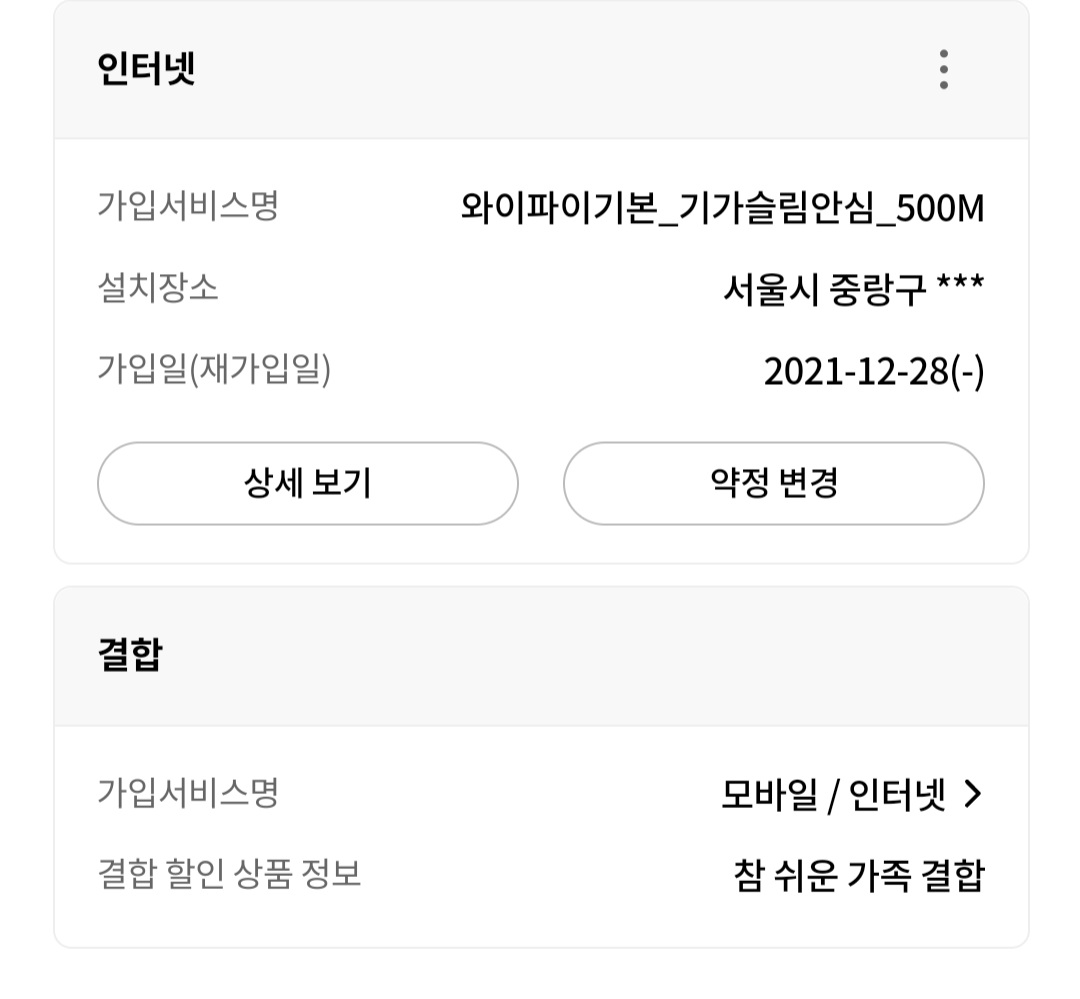 2. 본가에서 이미 저렇게 결합해서 사용중이면 제가 핸드폰이 가족결합으로 들어갔을때 자취집 인터넷만 제 폰이랑 따로 할인을 받을수있는 방법은 없는지(부모님이 제 주소를 모르십니다.)