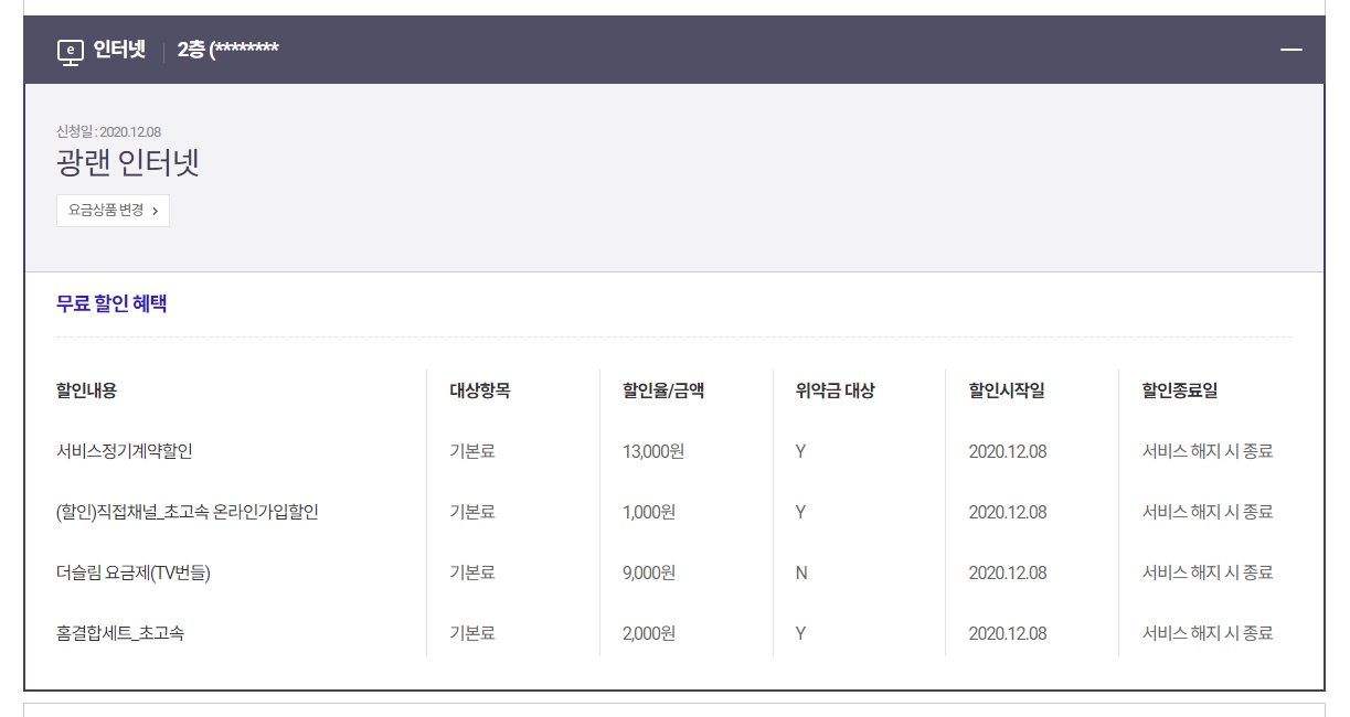 참고#5. 인터넷 1대 (16년 / 부모님댁 인터넷 단일) ☆변동☆