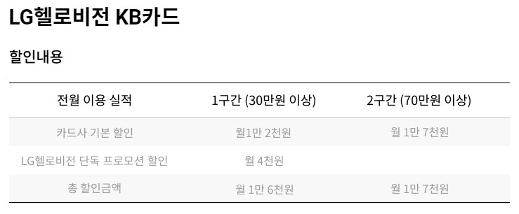 LG헬로비전 페이지를 살펴보니 국민카드 내용 중에