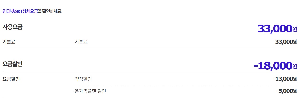 지금사용중인건 skt온가족플랜할인으로 아래의 요금제를 쓰고 있습니다