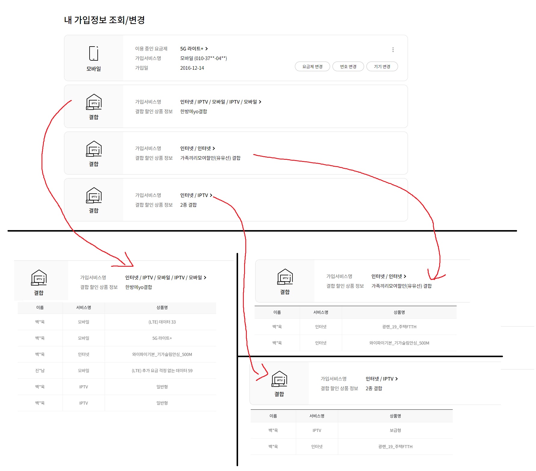 부모님 LG상품구성, 약정만료일, 결합상품 이름