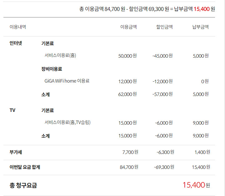 KT인터넷만 남는다면 요금 할인을 받지 못하기에 오히려 더 비싼 요금으로 청구 될 것입니다.