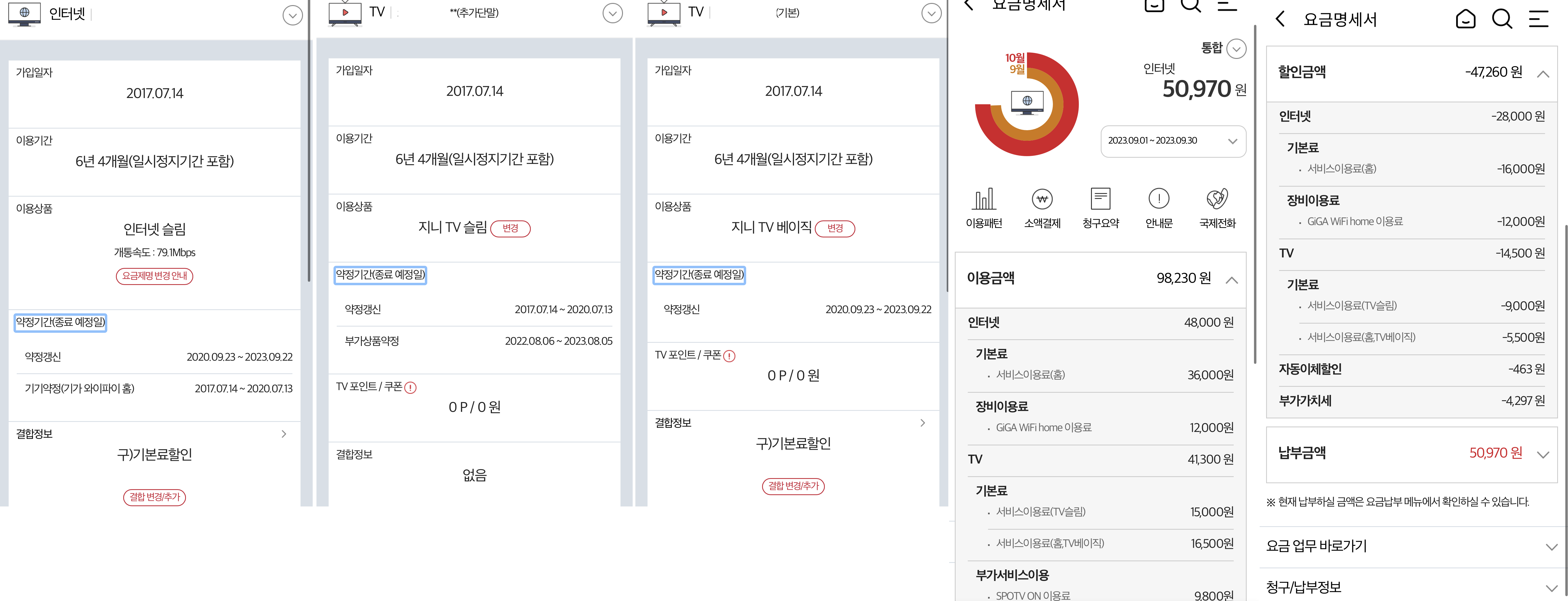 결합된 휴대폰 통신사 상관없이 인터넷, 티비 월요금은 위와 동일하게 납부하게 됩니다.
