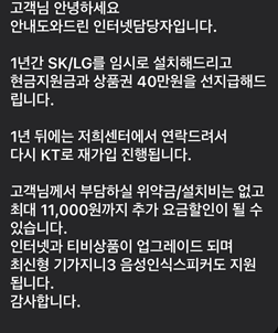 또한 1년간 SK/LG를 임시로 설치해 주고 사은품을 준다고 했는데