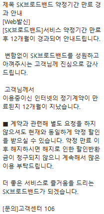 2) 단, 재약정 혜택을 위해 SK 본사에 전화하여 해지신공을 발휘해 주세용